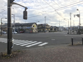 国道457号線の号線の十字路の信号を渡らず右折したら、そのまま真っすぐ歩いてください