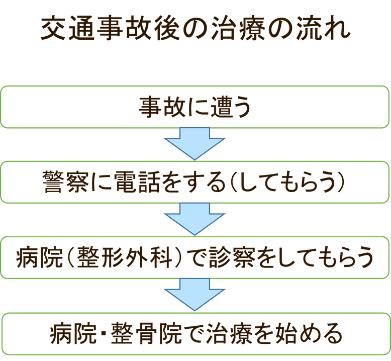 整骨院で交通事故後のケガの治療を受けるための具体的な流れを説明します。