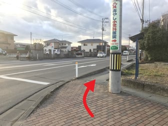 国道457号線の号線の十字路の信号を渡らず右折したら、そのまま真っすぐ歩いてください