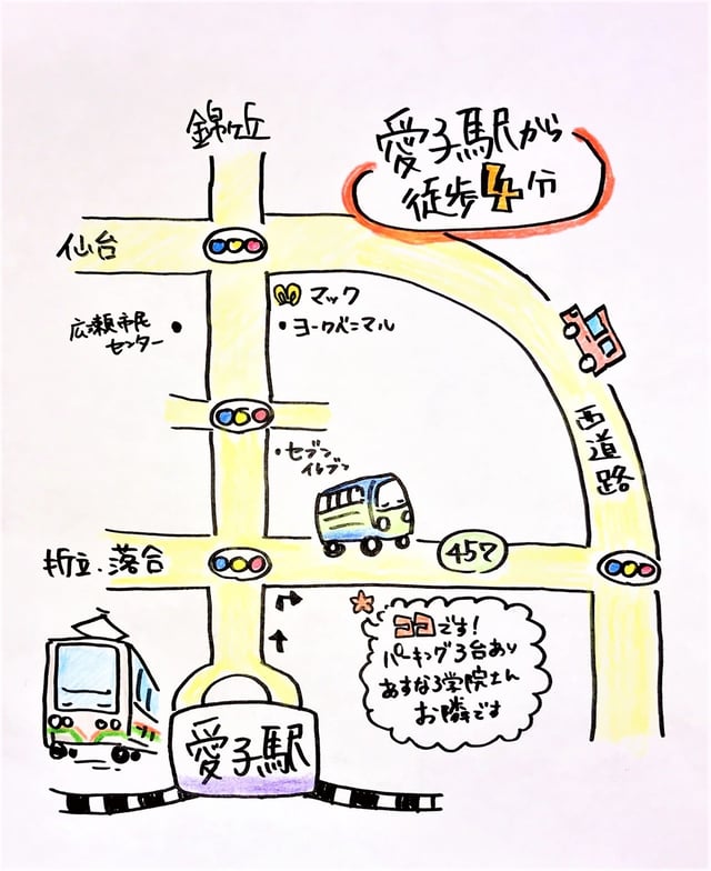 ●バスや電車でお越しの方(愛子駅から徒歩4分)