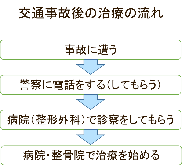 整骨院で交通事故後のケガの治療を受けるための具体的な流れを説明します。