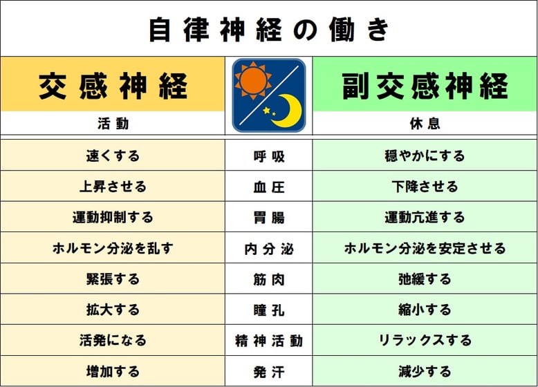自律神経は、内臓の働きや血流、体温調整など、私たちが意識しなくても体を正常に保ってくれている神経です。
